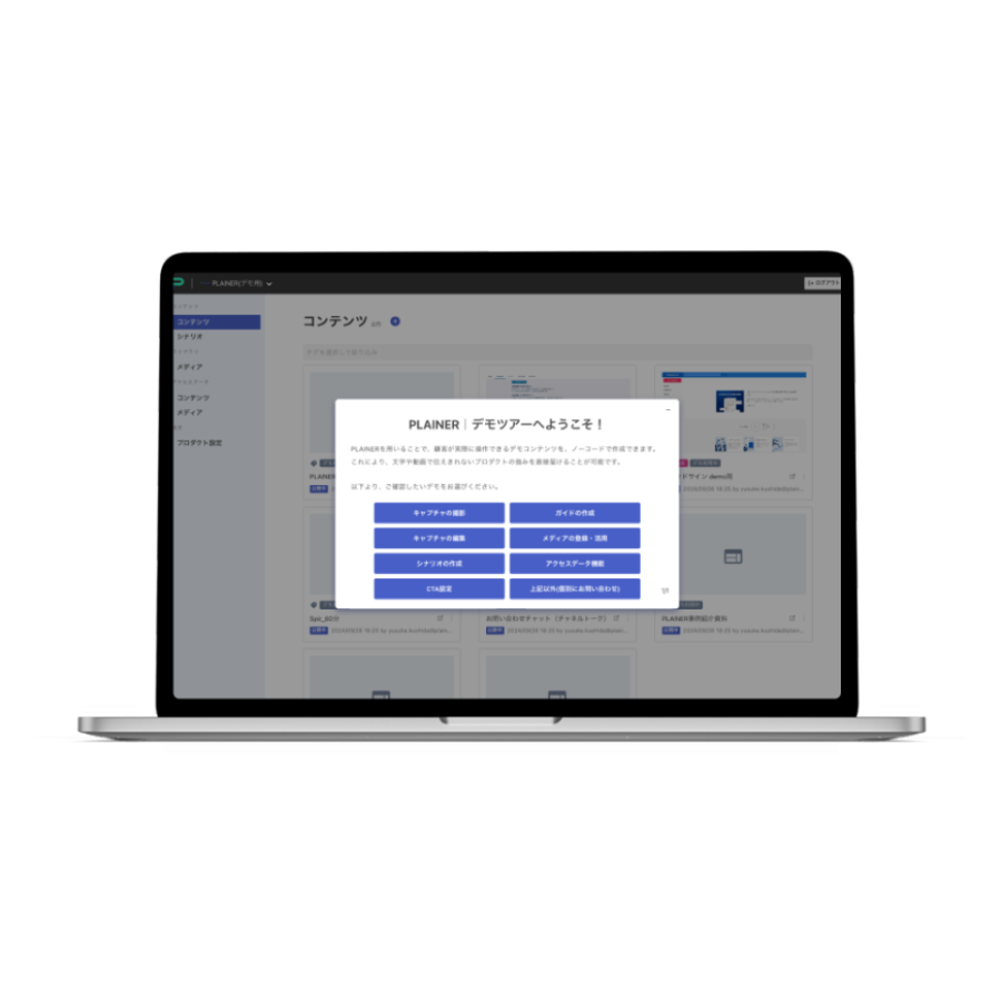 製品デモ以外にも動画、スライドなど伝えたいシナリオ構築可能